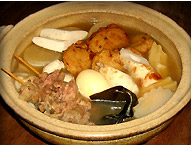 ■お吸い物より少し味の濃い、だし汁を作ります。 ■ひとゆでした大根、こんにゃく、こんぶ、ちくわぶ、牛すじなど、硬くて味のしみにくい材料を先に入れ、 ゆっくり煮ます。 ■ジャガイモは丸ごとゆでて皮をむき、さめてから中ごろに加えます。 ■さつま揚げ、ちくわ、つみれ、はんぺん、たこなどは、食べる少し前に入れます。 ■全部入れたら、きっちりふたを閉めない!はんぺんが膨らんでしまいます。